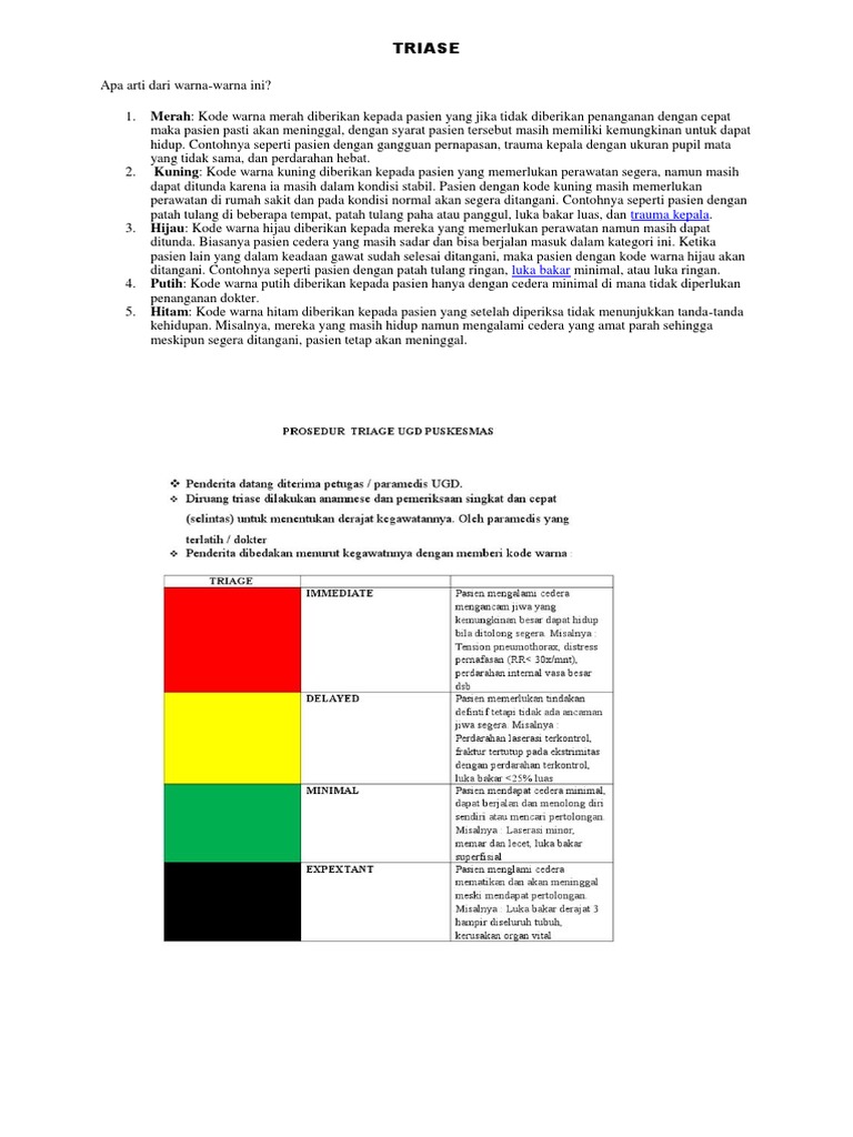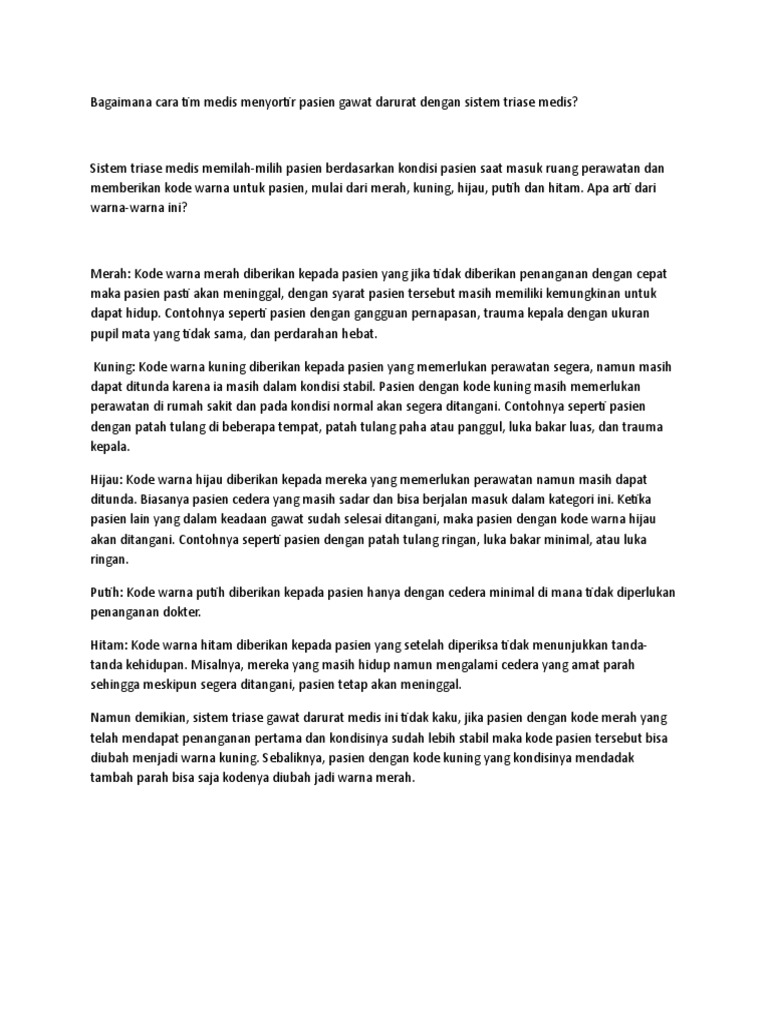 Inilah Arti Warna Triage Di Instalasi Gawat Darurat