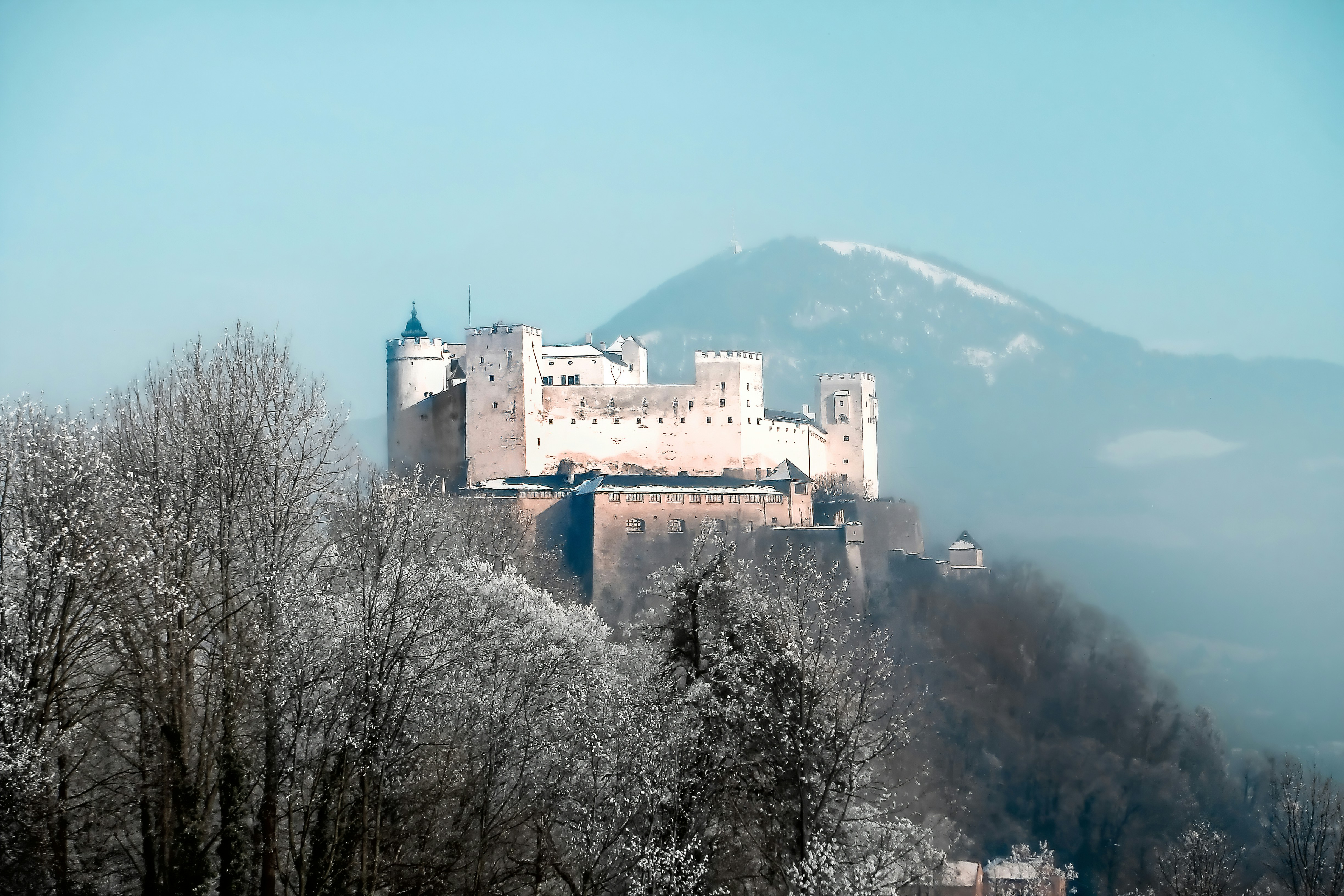 Wallpaper Winter Snow Castle Building Mountain Home Austria Panorama Fortress Austria Salzburg Salzburg Church Salzburg Cathedral Salzburg Cathedral Hohensalzburg Castle Images For Desktop Section Gorod Download