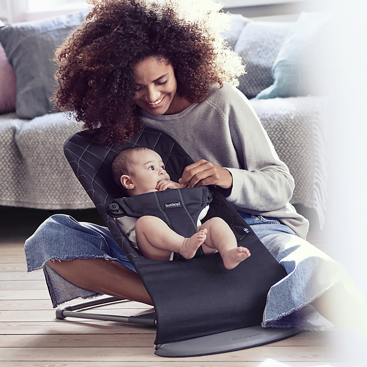 Bliss Quilted Cotton Baby Bouncer Light Grey Babybjorn Design