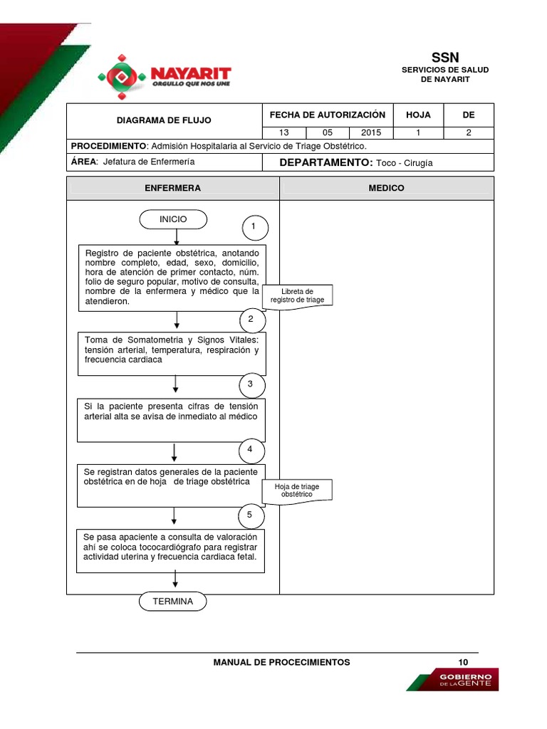 Diagrama De Flujo Del Proceso De Triage Obstetrico