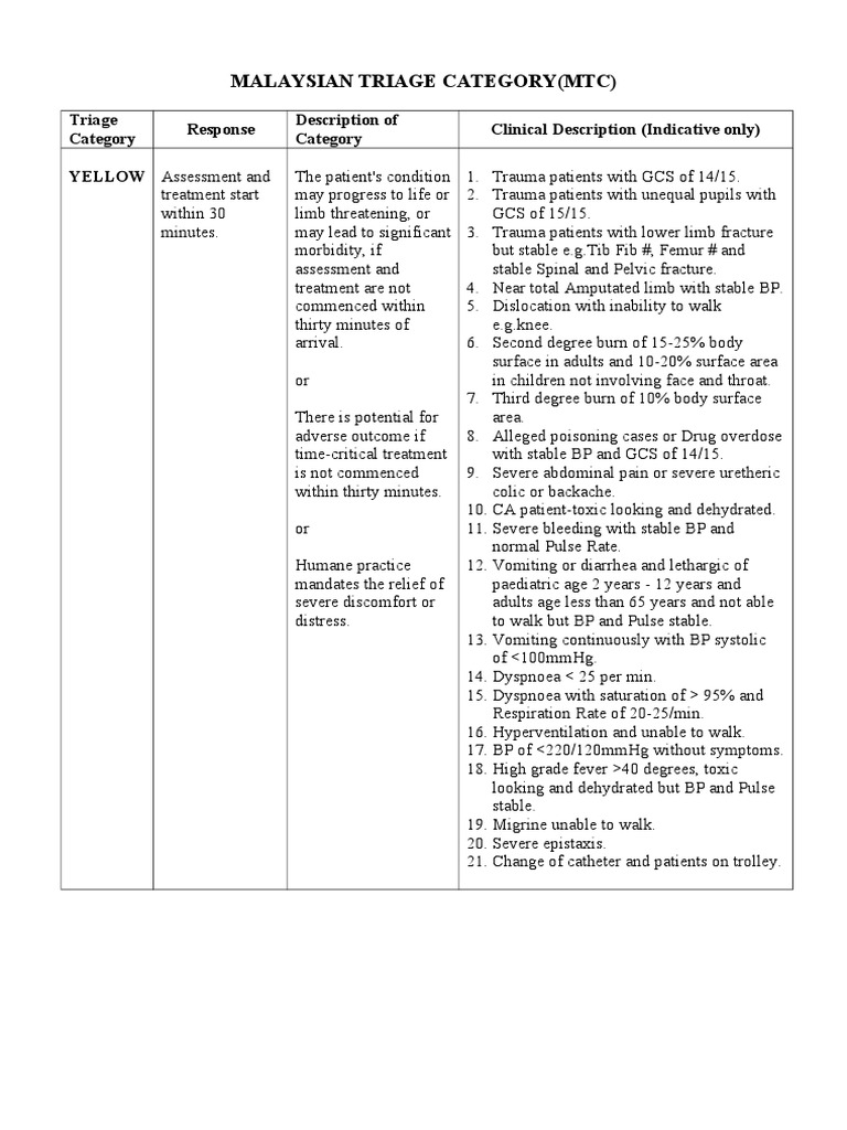 Malaysian Triage Category Yellow