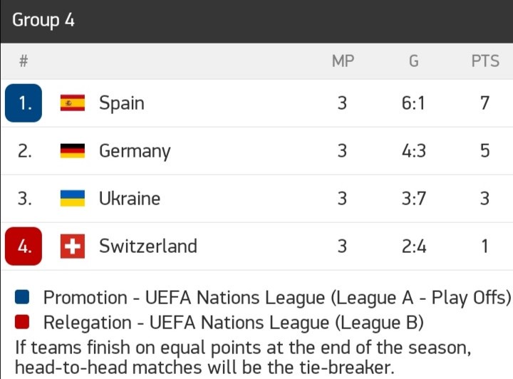 Nations League Points Table